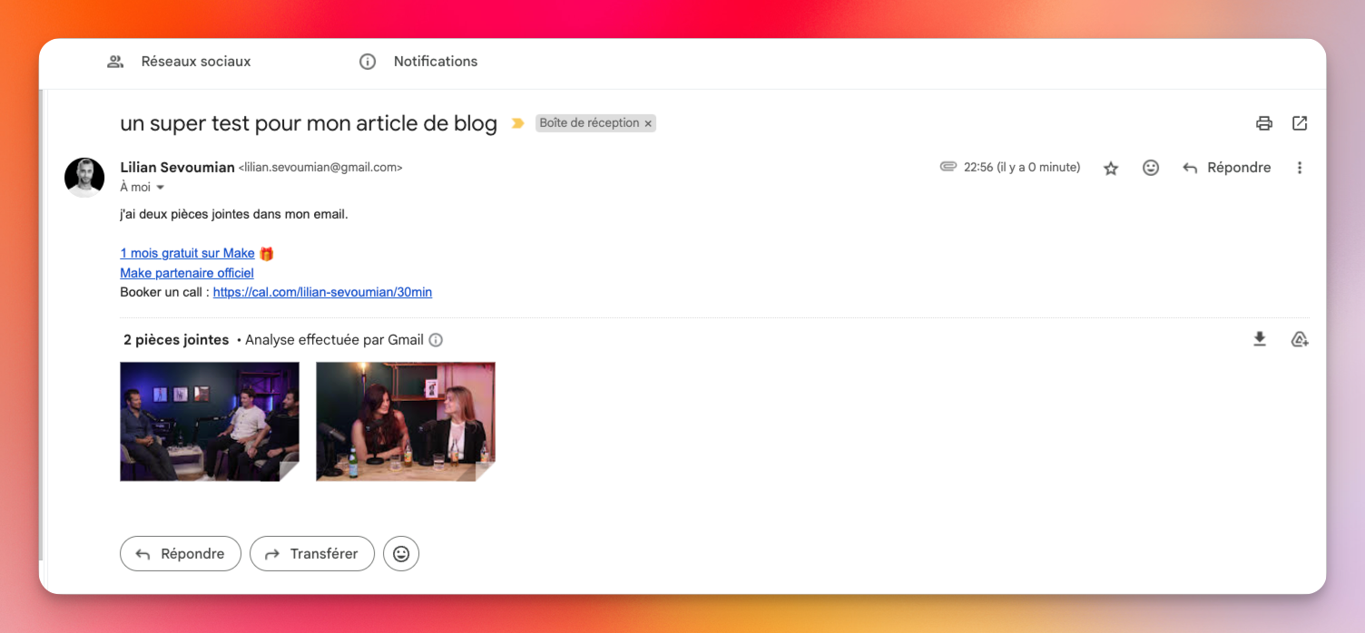Faisons un test avec Gmail et plusieurs pièces jointes à entrer dans airtable
