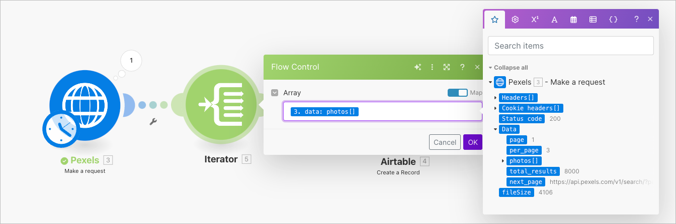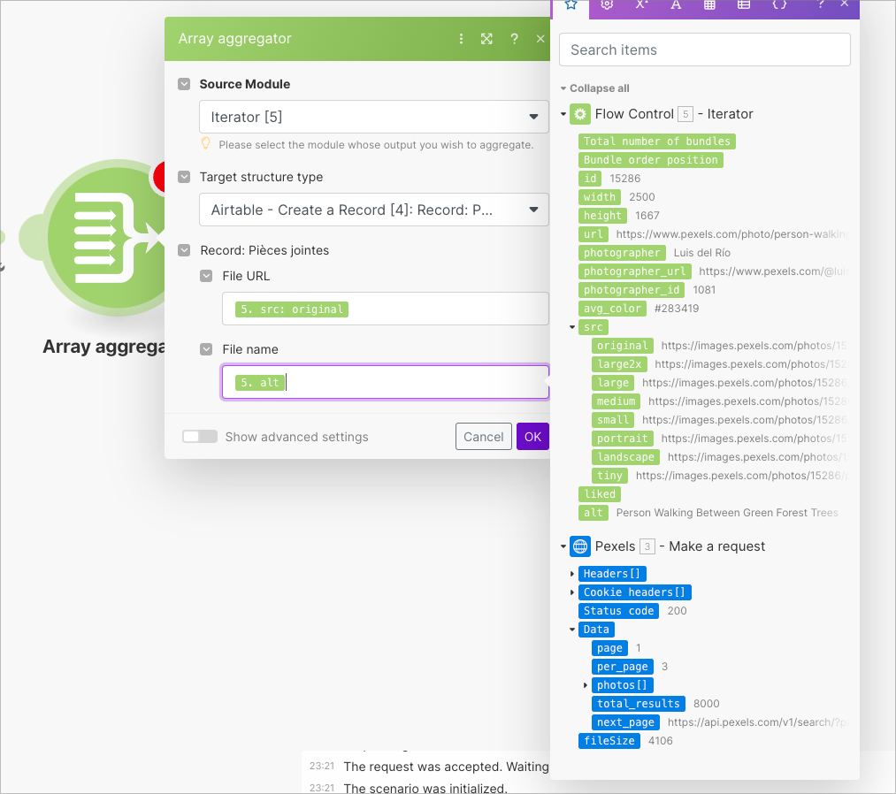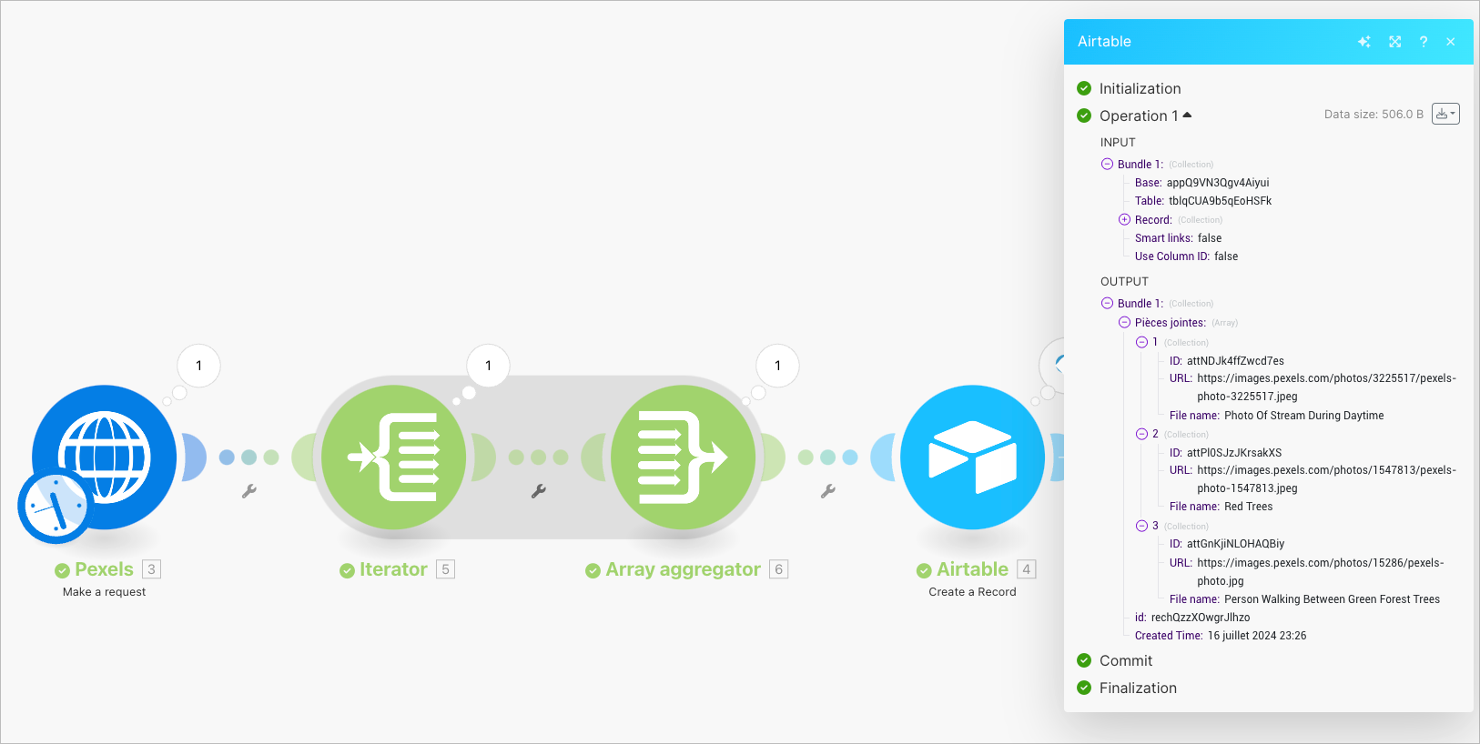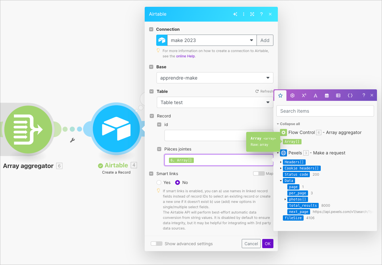 Il n'y a plus qu'à mapper les données. L'array aggregator va se charger de nous créer la structure attendue par Airtable. C'est magique !