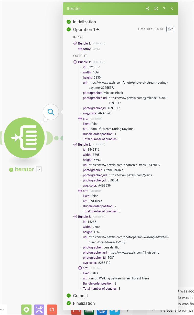 Vous entrez l'array Photos à l'intérieur de l'itérator, celui-ci va produire un bundle par index dans Photos (dans l'exemple il y en a trois).